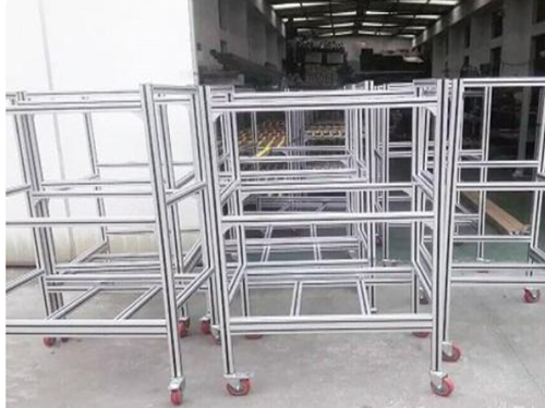 對定制鋁型材物料周轉車進行選型,根據對承重的要求來選擇即可,通常會選4040系列型材對框架進行組裝即可,4040系列的承重范圍一般在500KG-1500KG,基本可以達到要求。